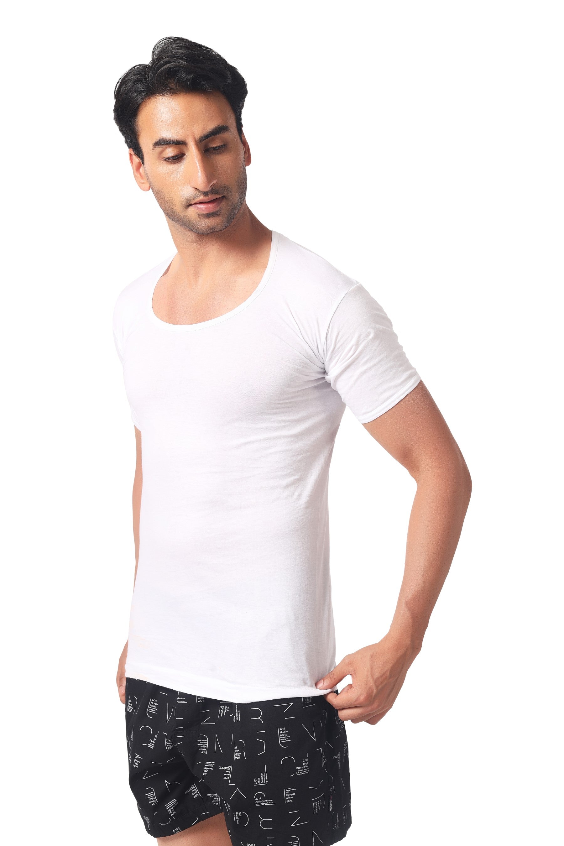 Designed for men who value everyday ease with a touch of sharpness, the Spark Vest RNS delivers breathable comfort and a clean, sleeve look. Crafted from soft, cotton-rich fabric, it features a round neck and short sleeves for smooth irritation-free wear, perfect for layering or wearing solo in warmer weather.